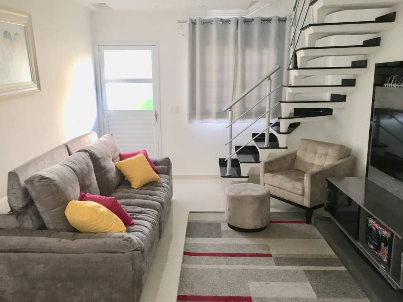 Sobrado com 55 m2 todo mobiliado em Condomínio Fechado. Sala e Cozinha integrada, 2 dormitórios, 1 banheiro, lavanderia e 1 vaga na garagem.
