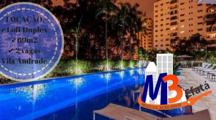 Loft Duplex, com 69m2, fica no 9 andar com vista para a cidade de SP, sol da manhã. No andar de cima possui 2 quartos e 1 banheiro. No andar de baixo sala, cozinha, lavanderia, lavabo e espaço para sala de jantar. Possui 2 vagas...