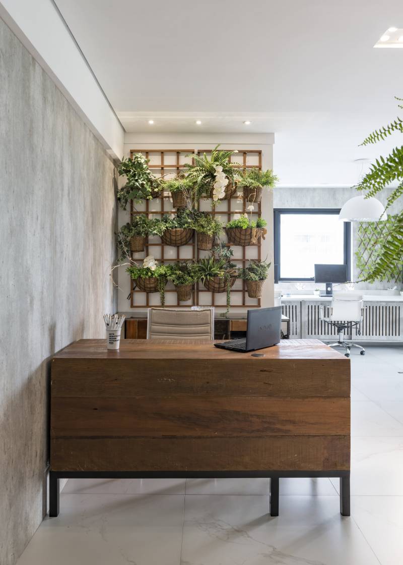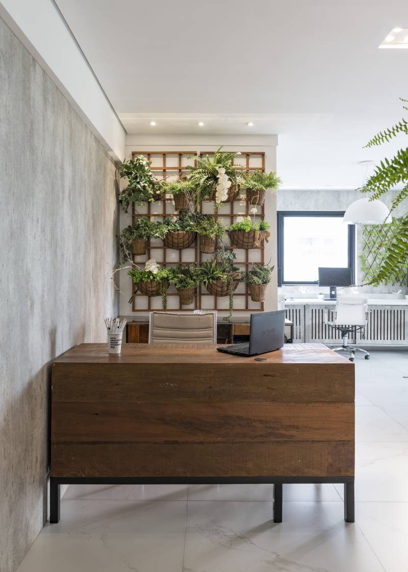 Descrição O projeto incorporou a varanda a sala com integração do novo piso e uma nova divisória de vidro foi possível realizar uma sala de reuniões privilegiada pela paisagem externa, luz natural para potencializar o ambiente de trabalho. A divisória em madeira e uplight é...