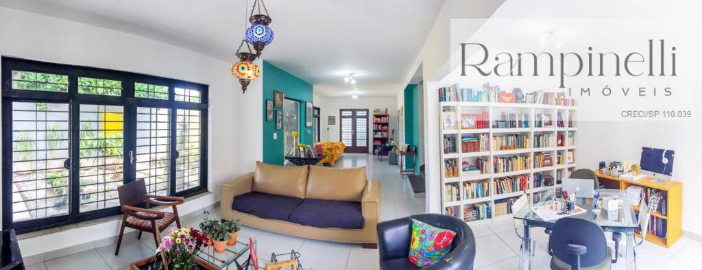 Uma casa térrea com 330m² distribuída em ampla sala para 3 ambientes, lareira, lavabo, 4 dormitórios sendo 1suite, banheiro social, cozinha ampla, edícula completa com 2 dormitórios, sala, cozinha e banheiro. Quintal amplo com muito verde, piscina, churrasqueira e sauna.6 vagas de garagem. Janelões e...