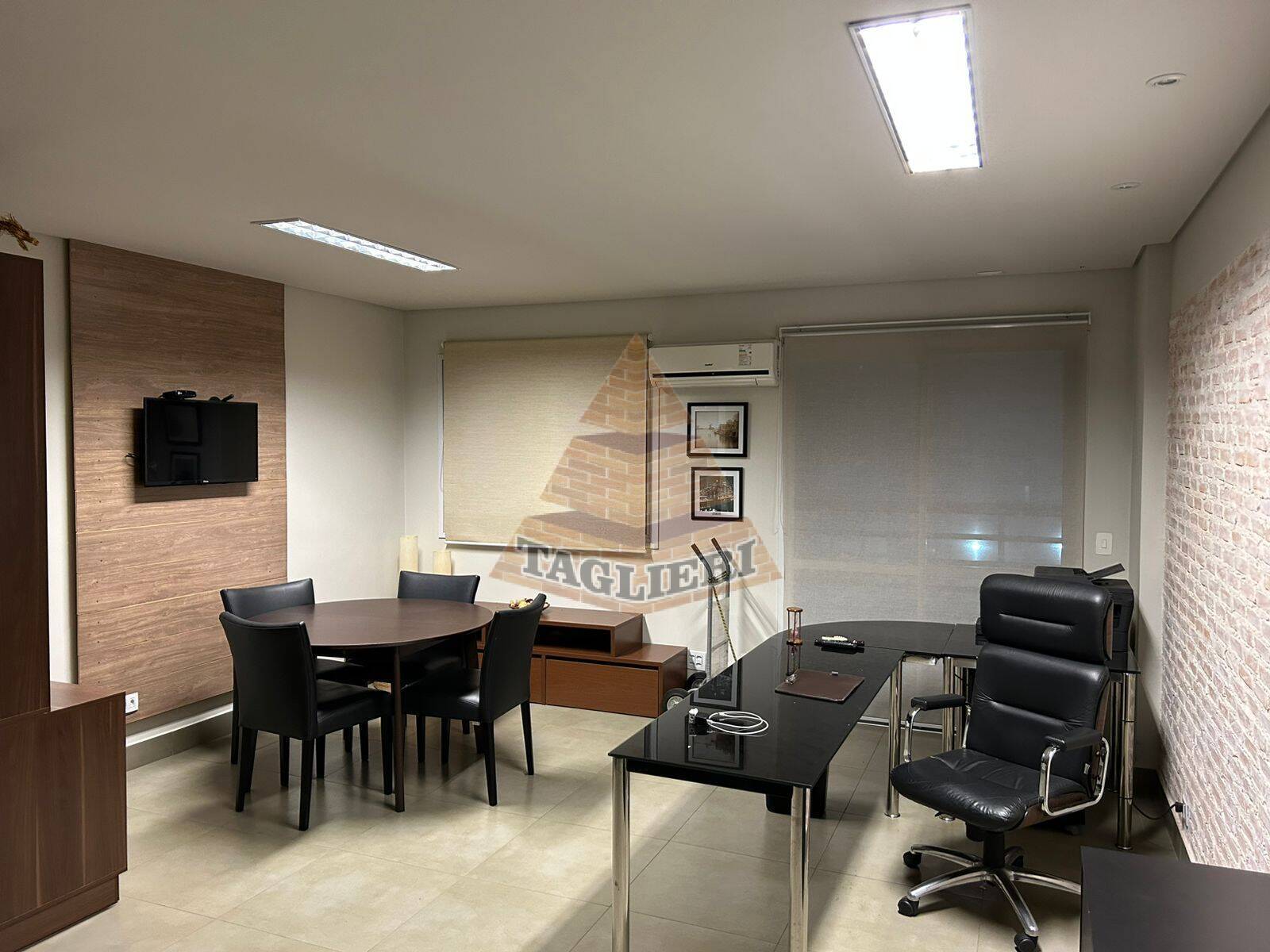 A sala está com piso em porcelanato, forro de gesso, ar-condicionado e mobílias (que poderão entrar na negociação).