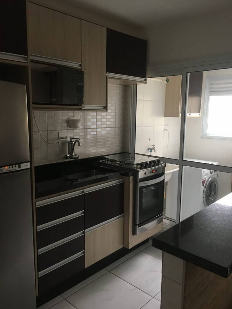 São 02 dorms, 01 banheiro ,sala, cozinha, distribuídos em 50m2. Segurança 24h, 02 portarias sendo 01 do condomínio e outra para entrada no bloco. Apartamento reformado, piso laminado, sanca na sala, box banheiro vidro temperado, armários de cozinha novos.